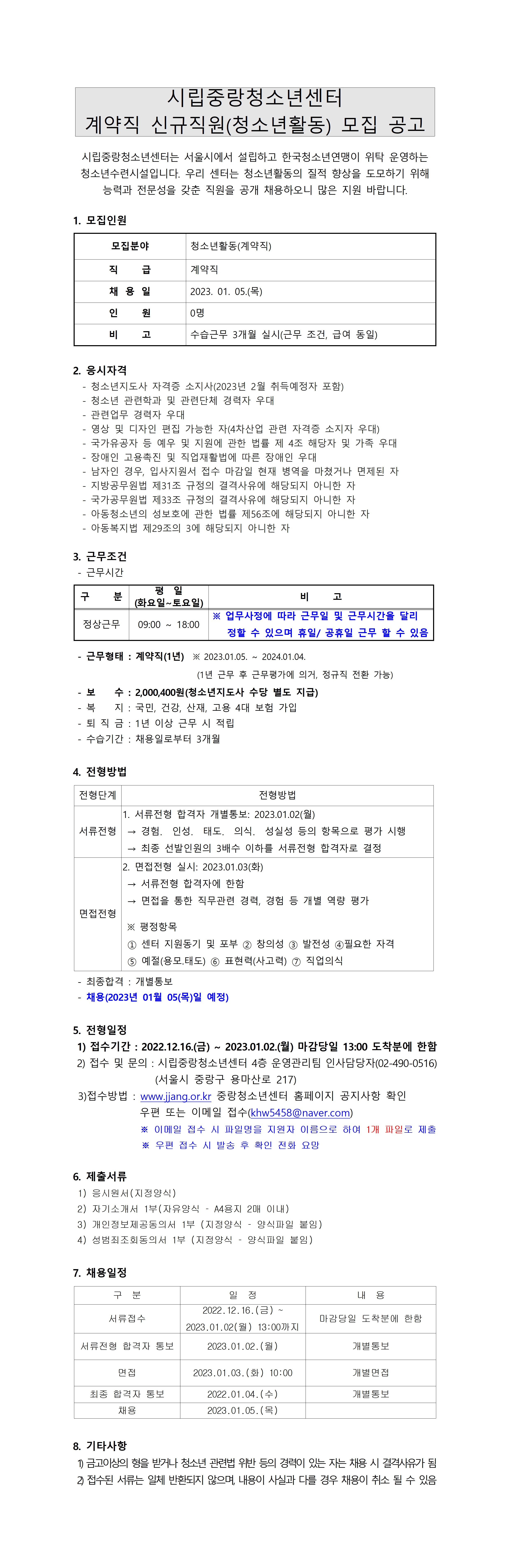 시립중랑청소년센터 청소년활동 신규직원 채용 공고 페이지 정보 작성자 운영자 댓글 0건 조회 2,353회 작성일 22-12-16 13:05 목록 본문 페이스북 공유 트위터 공유 이전글시립중랑청소년센터 청소년활동 신규직원 채용 재공고 22.12.16 다음글시립중랑청소년센터 대안학교 신규직원 모집 22.12.05 댓글 0 댓글목록 등록된 댓글이 없습니다.