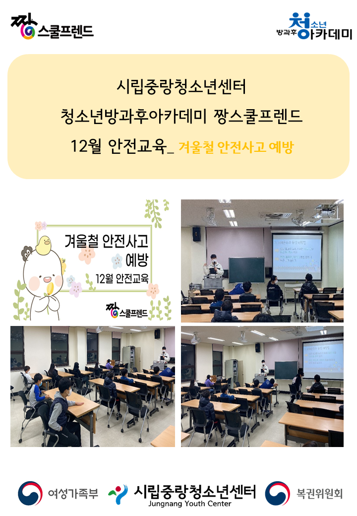짱스쿨프렌드 12월 안전교육 – 겨울철 안전사고 예방