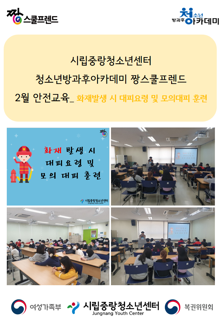 2월 안전교육 주제는 화재발생 시 대피요령 및 모의 대피 훈련 !!