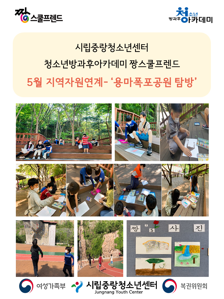 코로나 때문에 안에서만 생활하는 우리 친구들을 위해 함께 공원을 탐방했답니다.