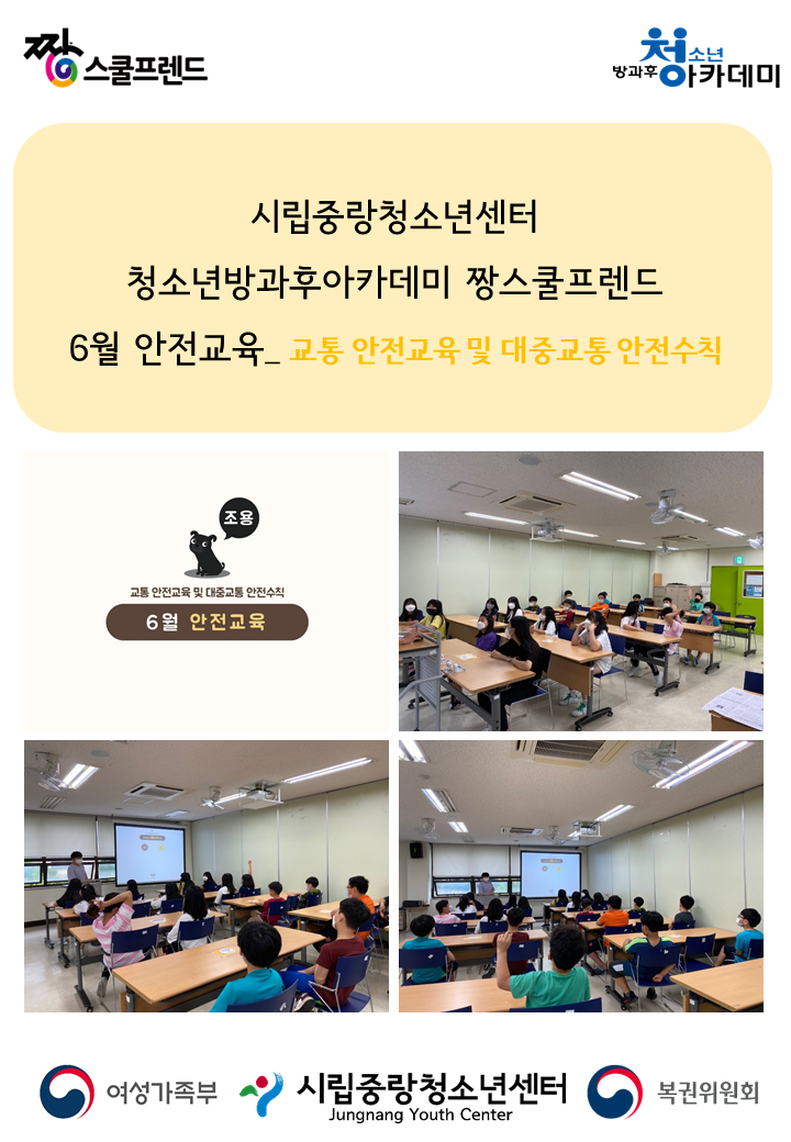 짱스쿨프렌드 6월 안전교육 – 교통 안전교육 및 대중교통 안전수칙