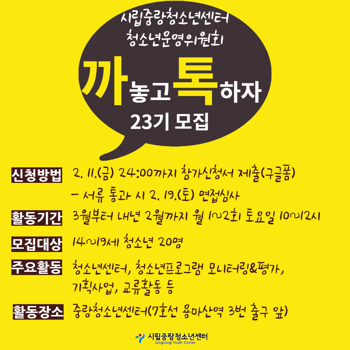 - 시립중랑청소년센터 조효진 02-490-0225