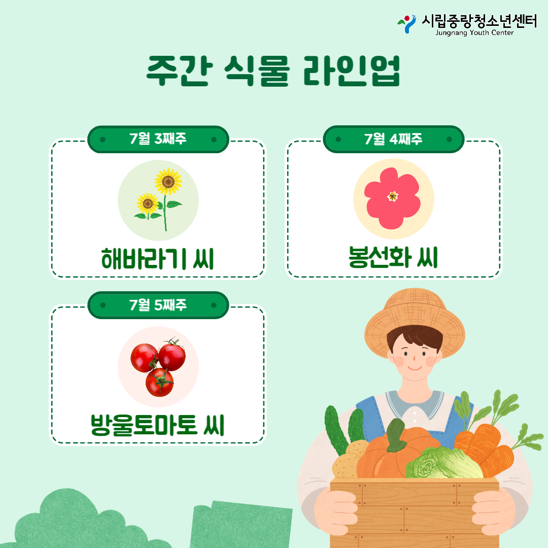 매주 다른 씨앗의 식물을 준비해 드립니다. (중복참여 가능)