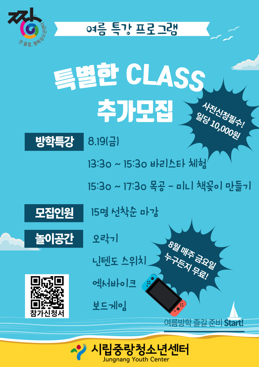 여름방학을 책임져 줄 특강을 추가로 모집합니다!