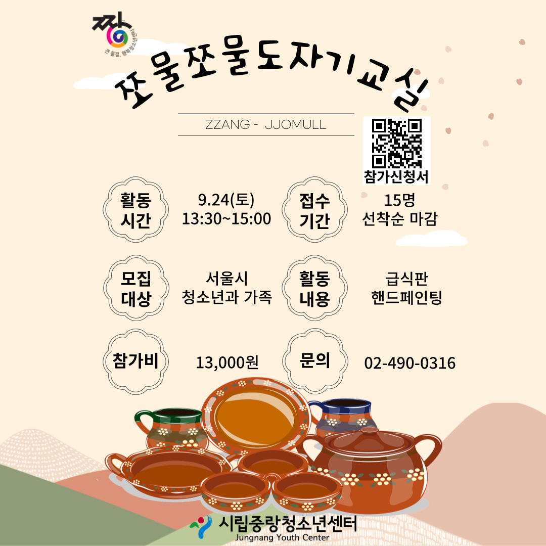 쪼물쪼물도자기교실 프로그램 참가자를 모집합니다.