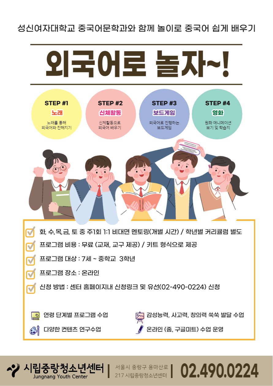 멘토는 중랑청소년센터 소속 성신여자대학교 중국어문화학과 학생들이 진행합니다.
