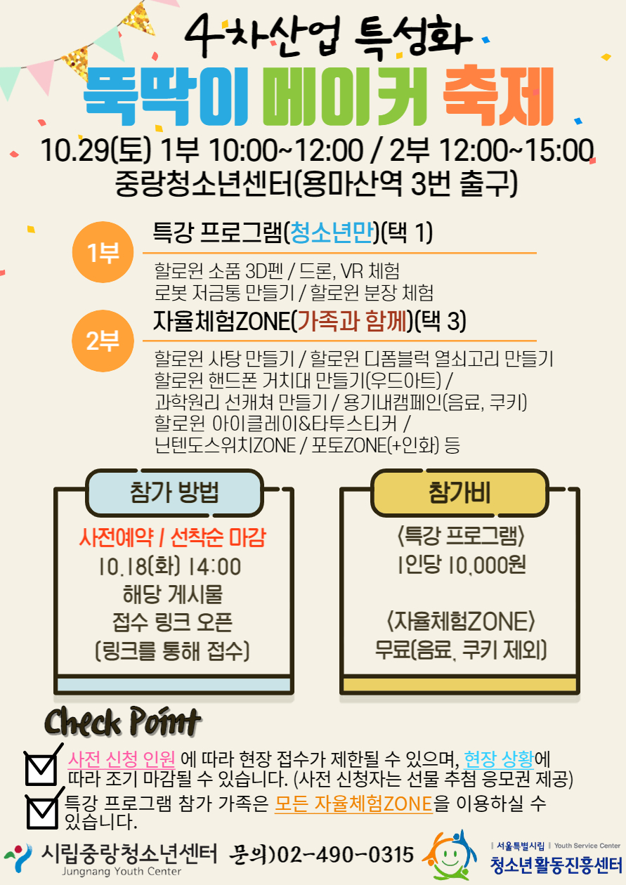 시립중랑청소년센터 특성화사업팀 02-490-0315