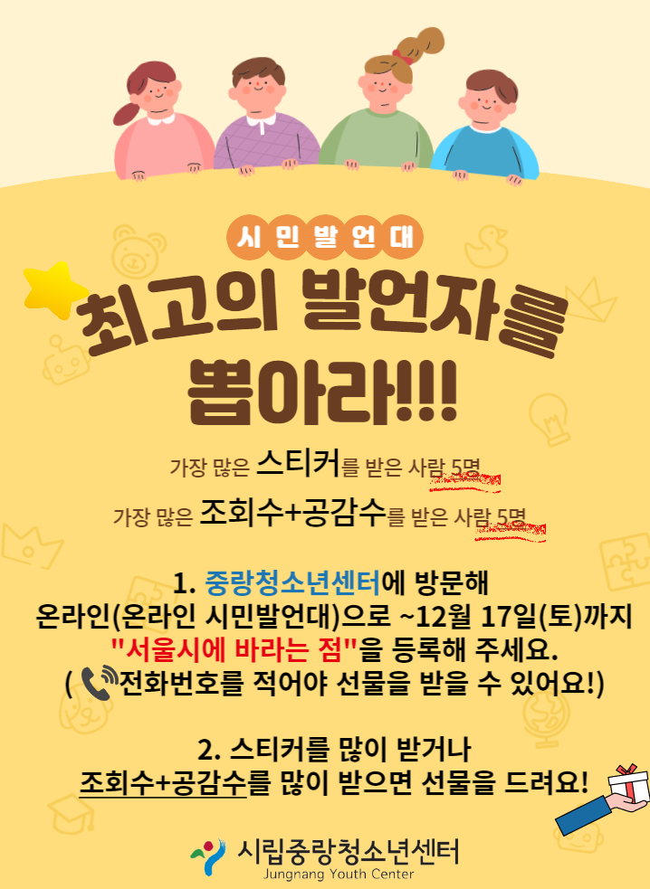 "시립중랑청소년센터 2층 시민발언대"를 방문하시어