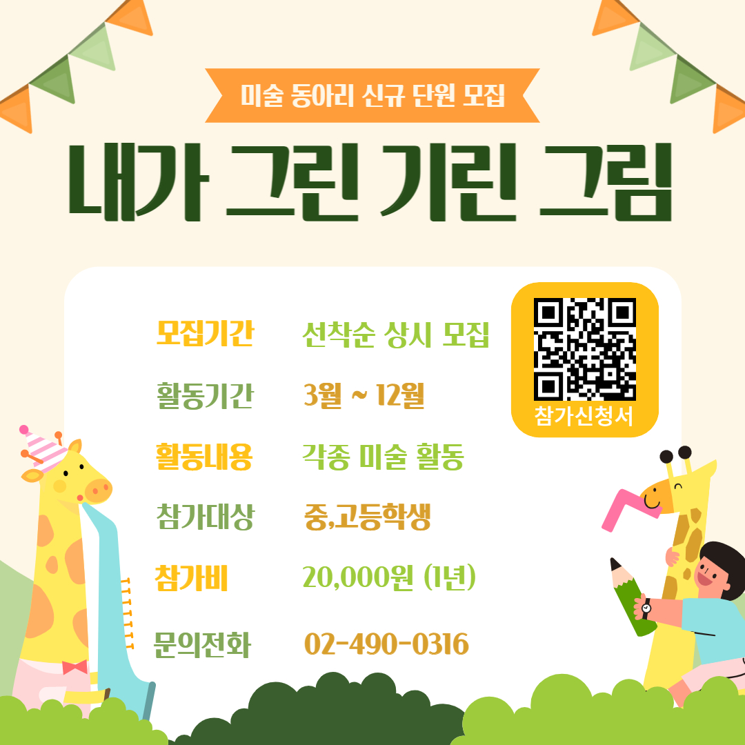 미술활동을 기준으로 스케치, 백드롭 페인팅 등 다양한 활동을 진행할 예정입니다.