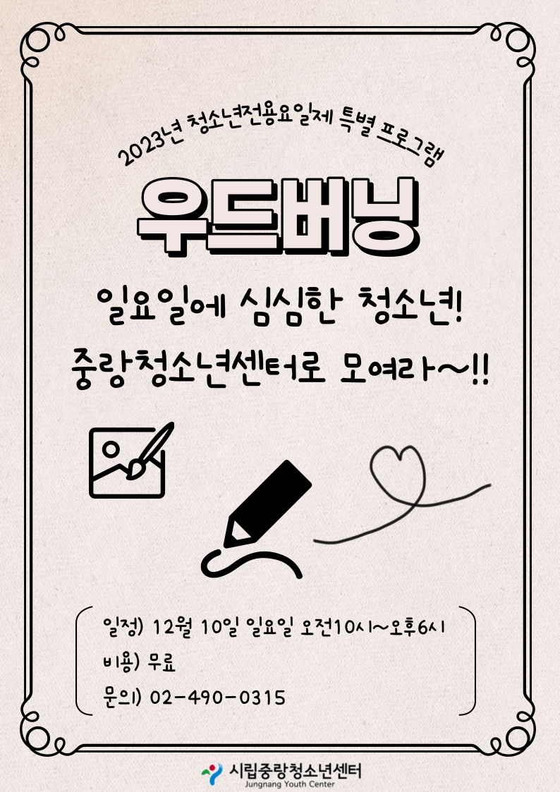 청소년 전용요일제 12월 체험프로그램 모집 (우드버닝)