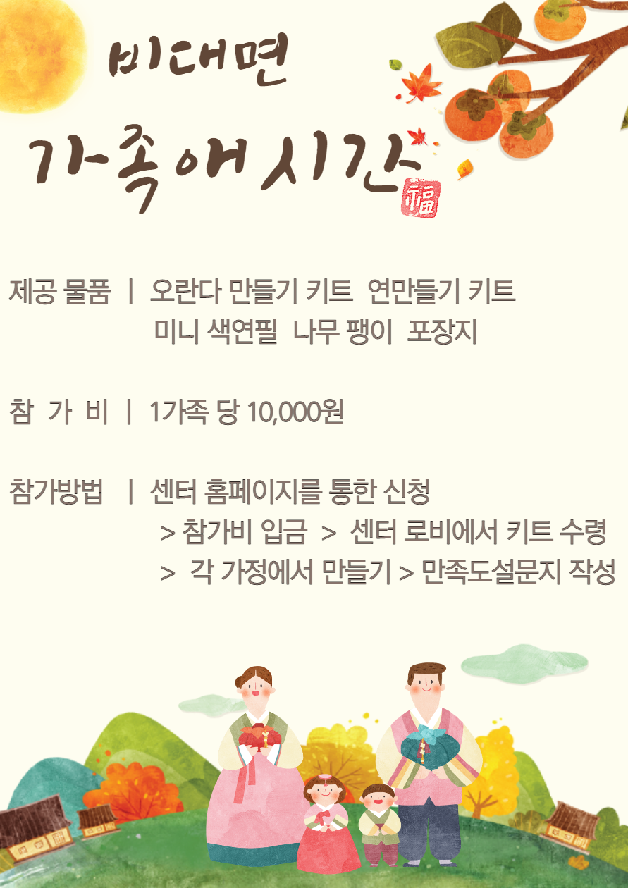 참가비 : 1가족 당 10,000원 (우리은행 1006-000-078239 시립중랑청소년센터)