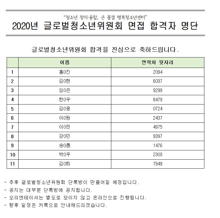 글로벌청소년위원회 합격자 안내 페이지 정보 작성자 관리자 댓글 0건 조회 3,650회 작성일 20-05-30 16:55 목록 본문 페이스북 공유 트위터 공유 이전글시립중랑청소년센터 수의계약 내역공개(시스템 냉, 난방기 청소) 20.06.05 다음글[공지] 중랑청소년센터 환경미화 신규직원(계약직) 채용 20.05.28 댓글 0 댓글목록 등록된 댓글이 없습니다.