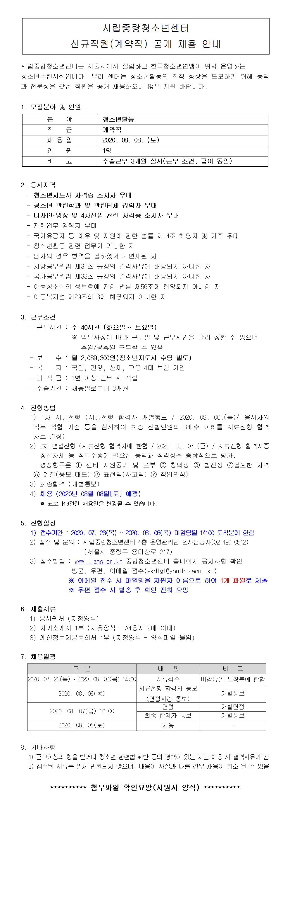 중랑청소년센터 청소년활동 신규직원(계약직) 채용 페이지 정보 작성자 관리자 댓글 0건 조회 4,144회 작성일 20-07-23 17:22 목록 본문 페이스북 공유 트위터 공유 이전글2020년 시립중랑청소년센터 문화강좌 청소년 드럼 강사 채용 공고 20.07.28 다음글[공지] 중랑청소년센터 청소 및 시설(보일러 포함)관리 신규직원(계약직)채용(수정) 20.07.21 댓글 0 댓글목록 등록된 댓글이 없습니다.