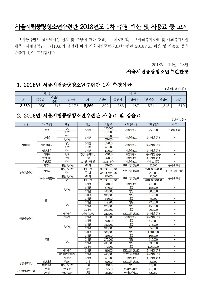 서울시립중랑청소년수련관 2018년도 1차 추경 예산 및 사용료 등 고시 페이지 정보 작성자 관리자 댓글 0건 조회 3,286회 작성일 18-12-18 14:13 목록 본문 페이스북 공유 트위터 공유 이전글서울시립중랑청소년수련관 2018년도 2차 추경 예산 및 사용료 등 고시 19.01.07 다음글중랑청소년수련관 12월 시설안전점검 결과 18.12.05 댓글 0 댓글목록 등록된 댓글이 없습니다.