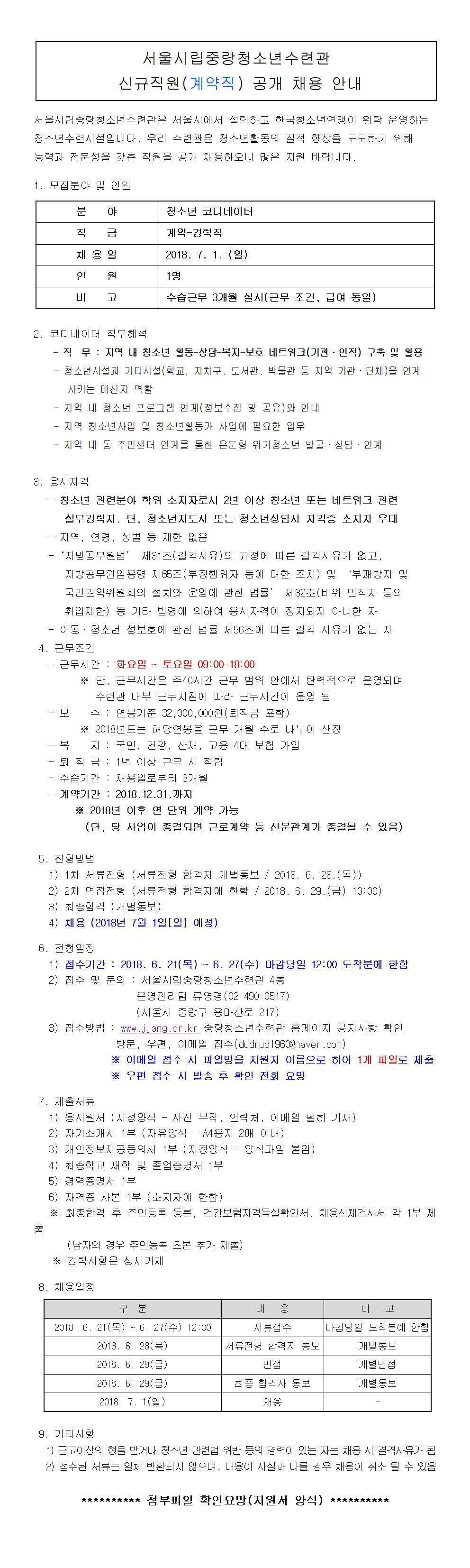 [마감]중랑청소년수련관 신규직원 (계약직-코디네이터) 공개 채용 안내 페이지 정보 작성자 관리자 댓글 0건 조회 4,154회 작성일 18-06-05 17:48 목록 본문 페이스북 공유 트위터 공유 이전글변.호.인 (봉사, 무료, 모의재판, 친목쌓기) 선착순 20명 모집!! 18.06.12 다음글중랑청소년수련관 6월 시설안전점검 결과 18.06.05 댓글 0 댓글목록 등록된 댓글이 없습니다.