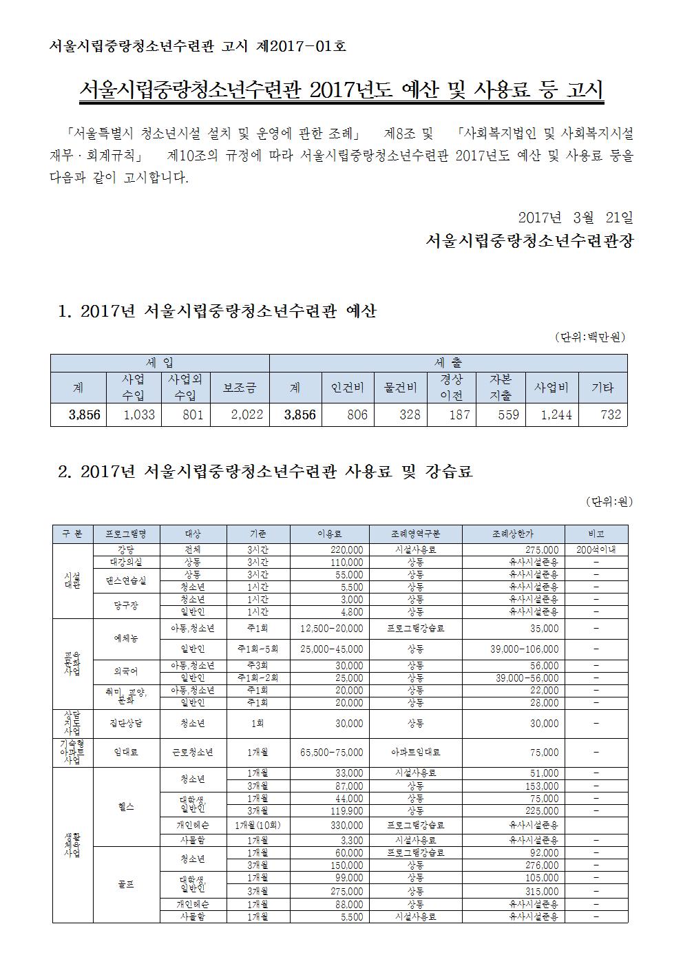 서울시립중랑청소년수련관 2017년도 예산 및 사용료 등 고시 페이지 정보 작성자 관리자 댓글 0건 조회 3,555회 작성일 17-03-21 16:37 목록 본문 페이스북 공유 트위터 공유 이전글[중랑청소년수련관] 안내데스크 정규(고용직)직원 긴급 채용 17.03.31 다음글2017년 3월 중랑청소년수련관 시설안전점검 결과 17.03.07 댓글 0 댓글목록 등록된 댓글이 없습니다.