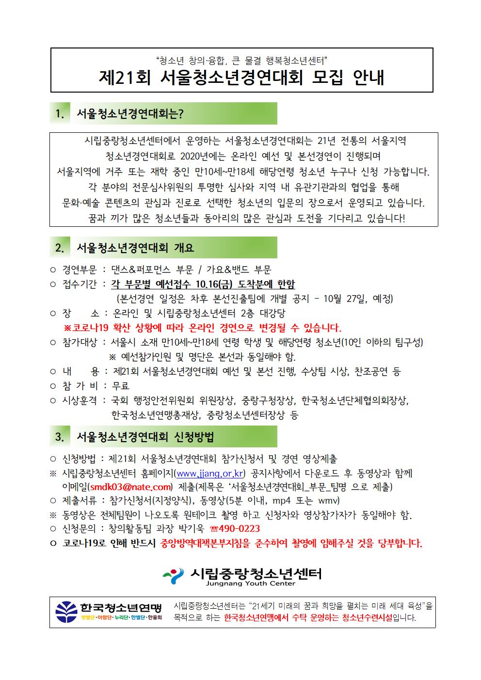 제21회 서울청소년경연대회 참가자모집