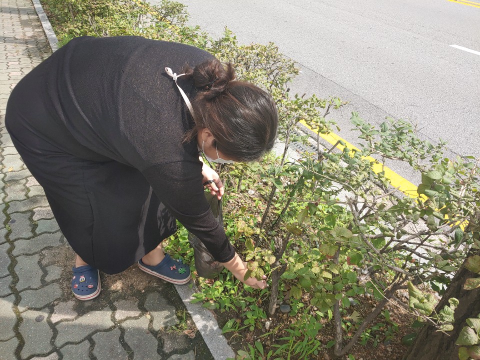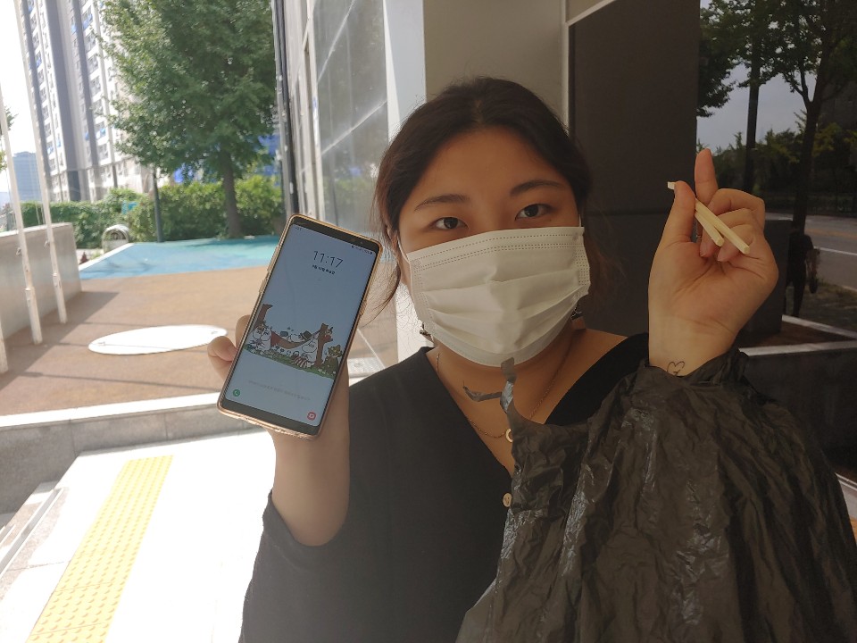 2. 집 주변 쓰레기 줍기 활동 전 시간과 본인 얼굴이 나오게 사진을 찍습니다.