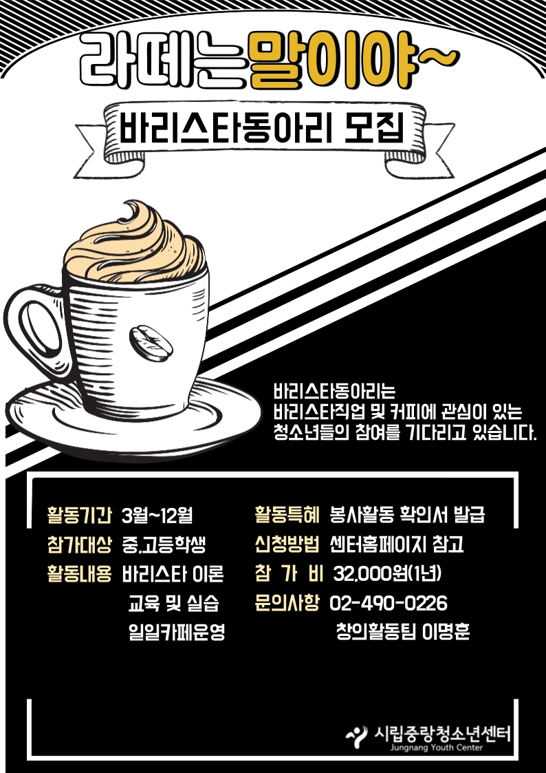 바리스타와 관련된 활동을 하는 동아리 입니다~