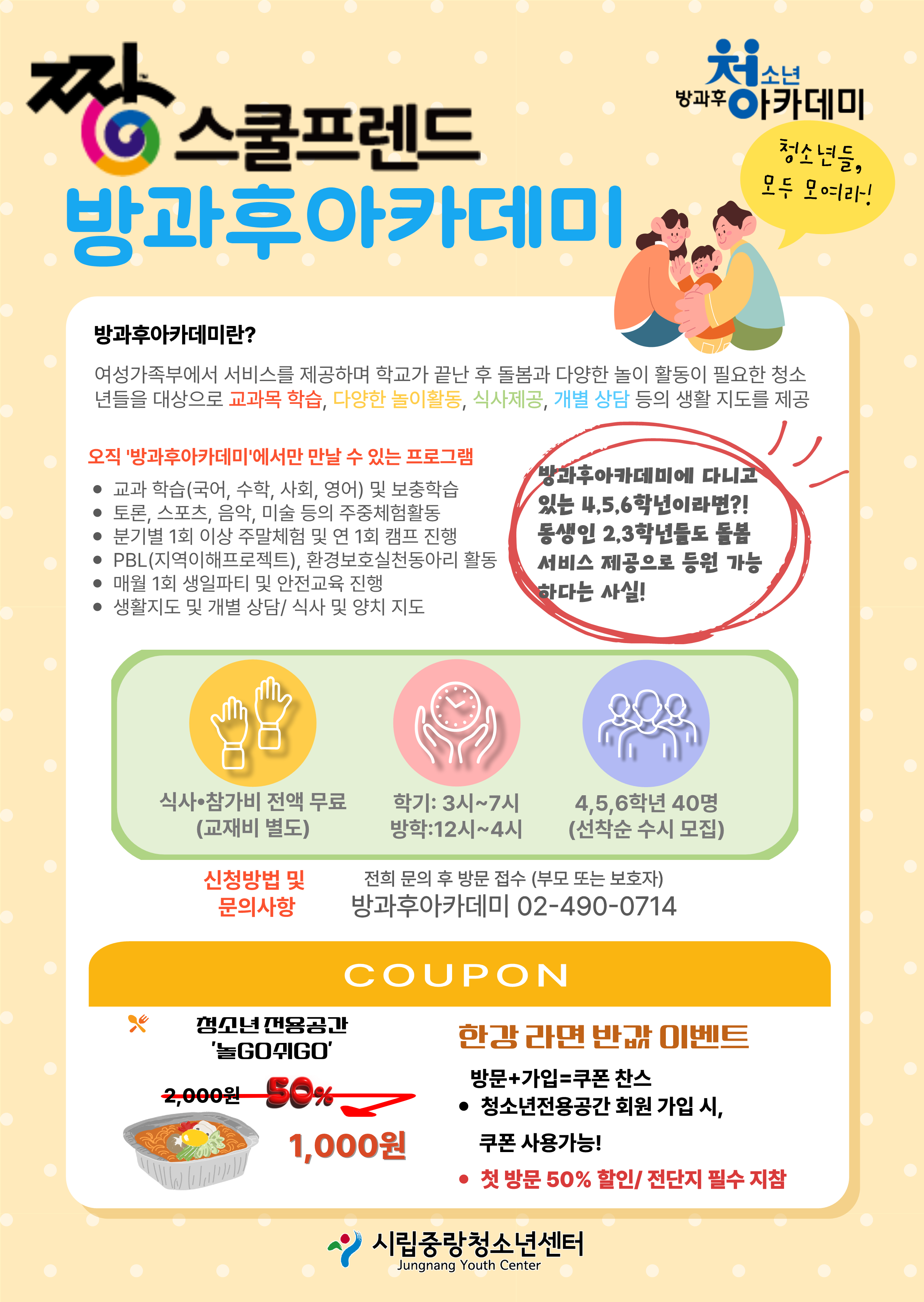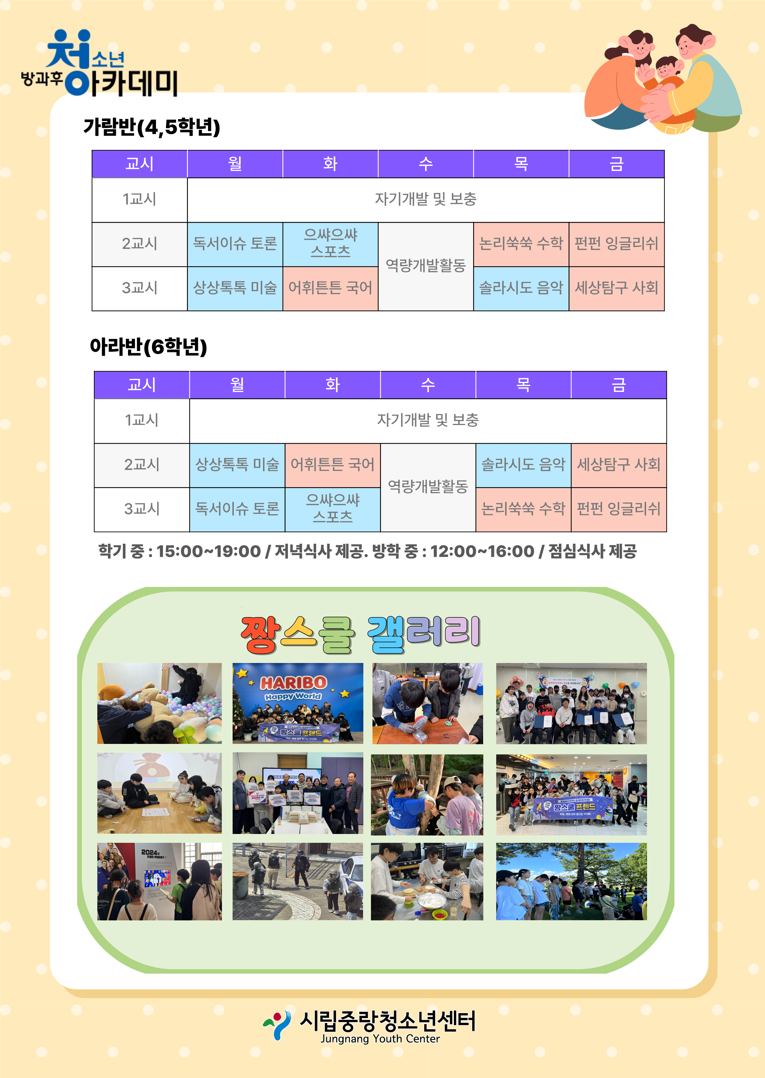 중랑청소년센터 방과후아카데미 '짱스쿨프렌드' 참가 청소년을 모집합니다!