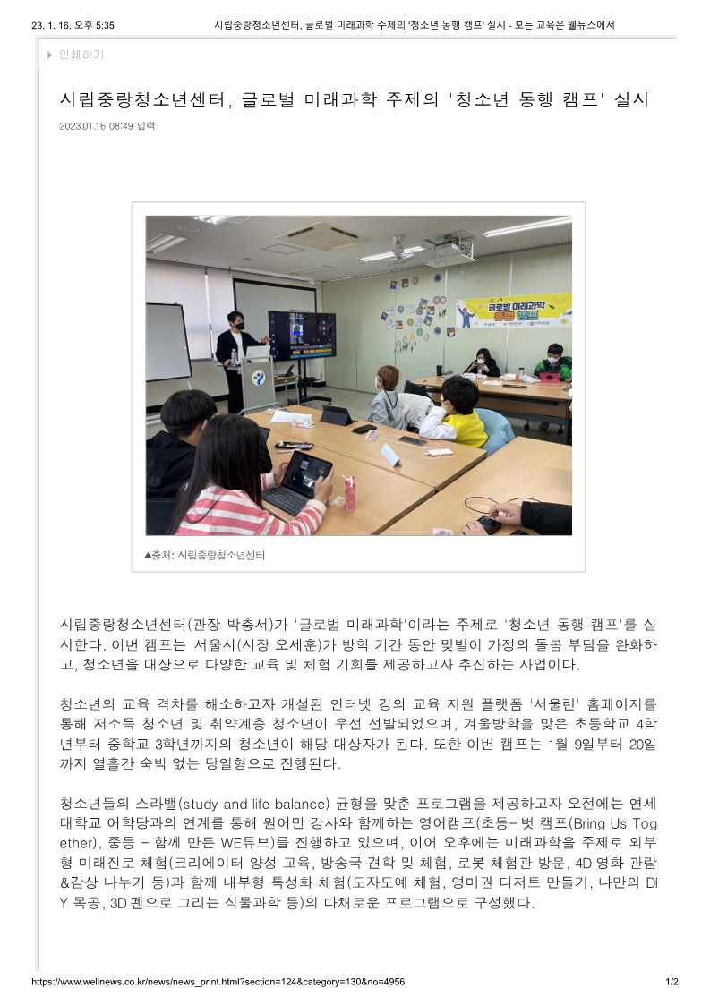 23-1-14 [뉴스에듀신문외4건] 2023 글로벌 미래과학 겨울방학 동행캠프