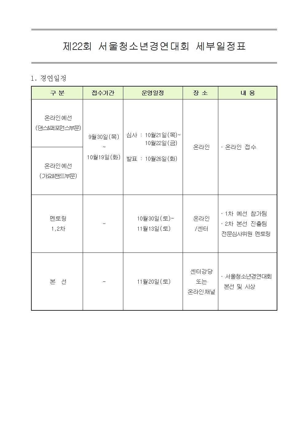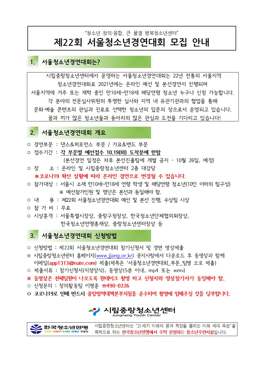 제22회 서울청소년경연대회 참가자 대모집